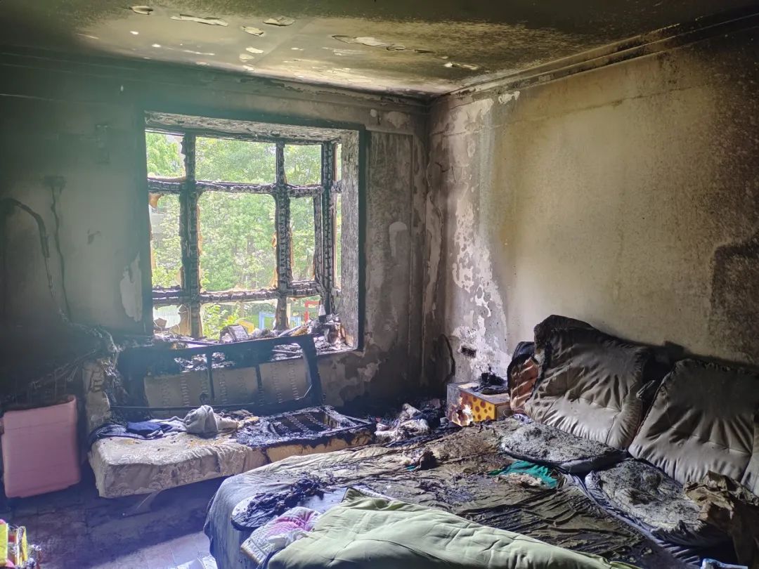5月13日,湖北武漢黃陂區某小區,一居民家中臥室起火,損失慘重。