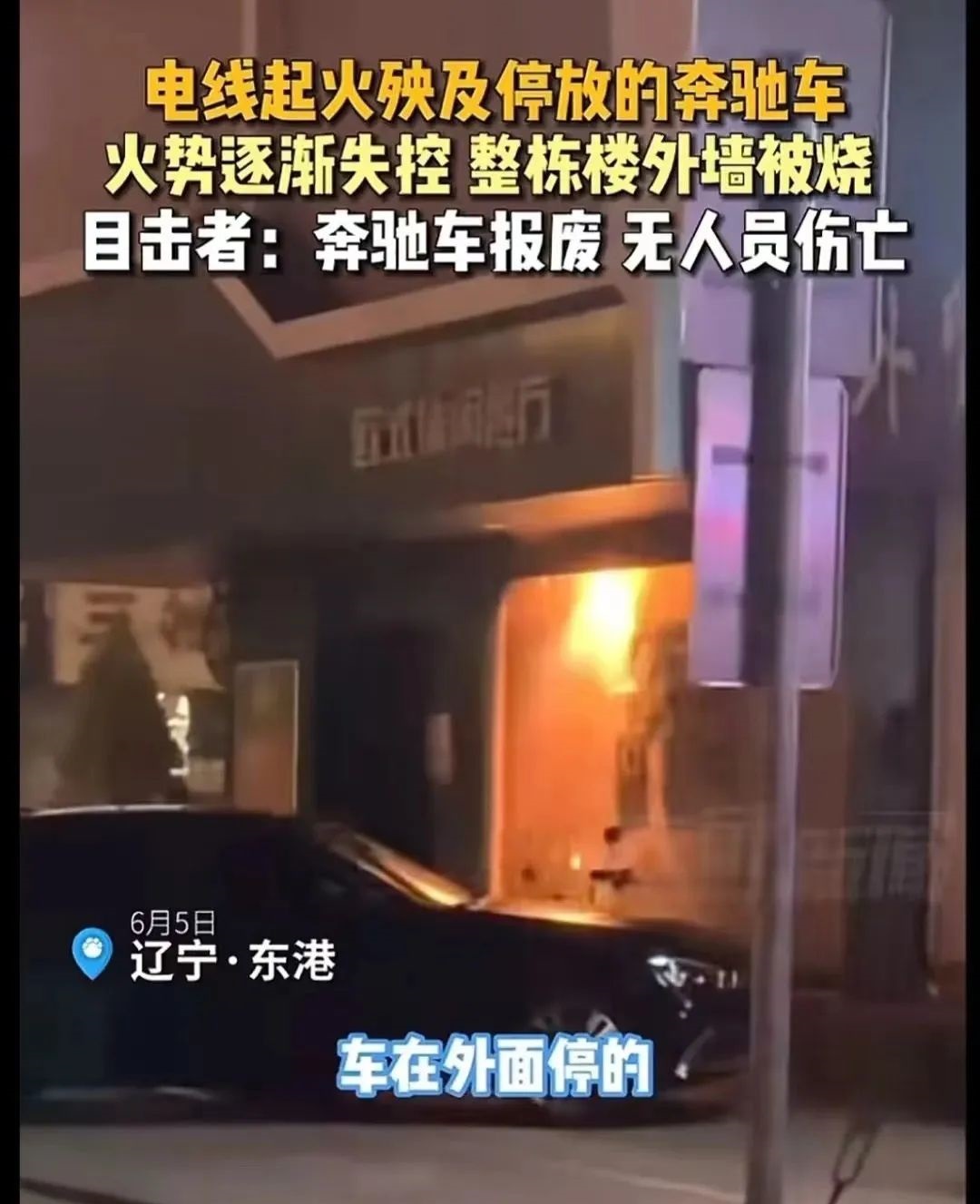 從視頻信息看,門簾牌區上 電線短路 ,火星四濺,并且外墻材料被引燃。