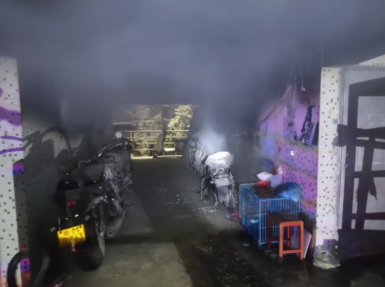 火災造成3輛電動車、1輛摩托車不同程度受損。