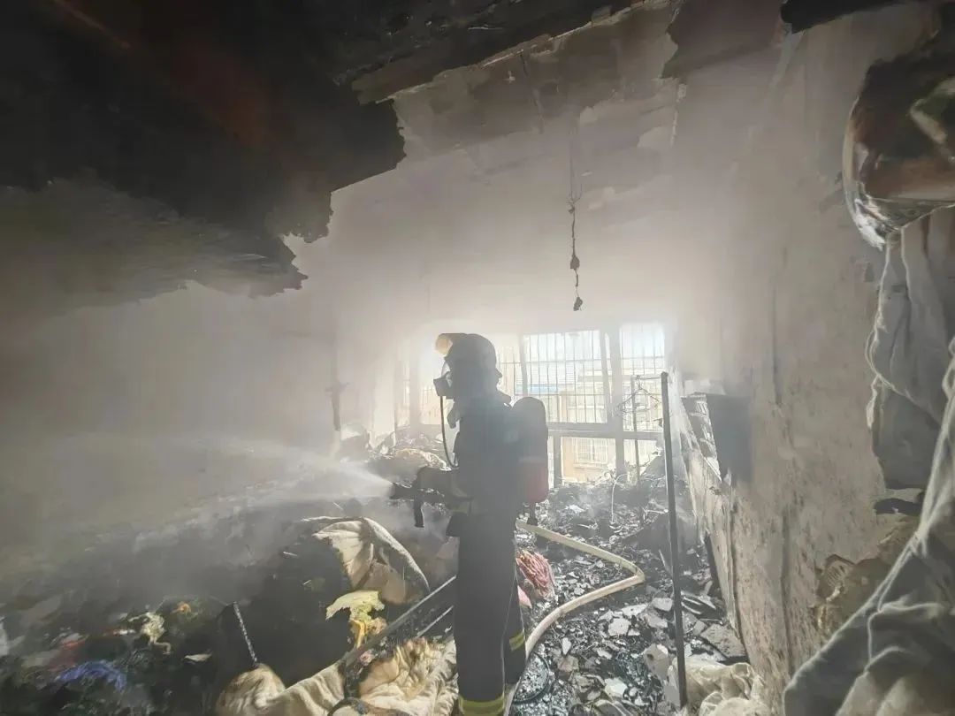 消防員到達(dá)現(xiàn)場后了解到,起火點(diǎn)位于居民樓6樓一臥室內(nèi),消防立即根據(jù)現(xiàn)場情況展開撲救。