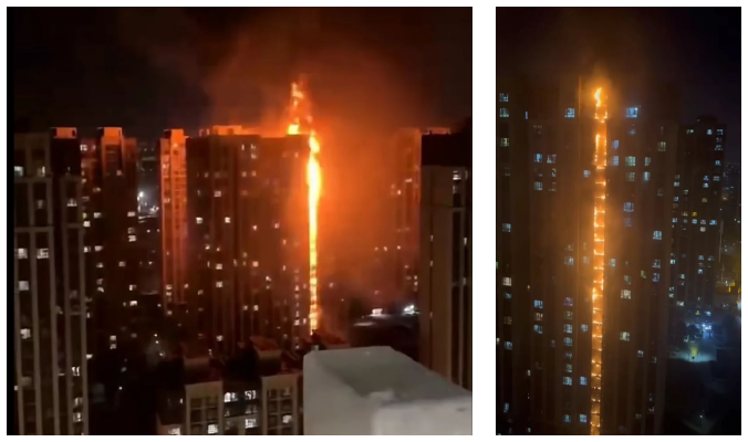 2 月 4 日晚上 10 點(diǎn)左右,河北省石家莊市橋西區(qū)一小區(qū)樓體南側(cè)外墻局部起火,火勢(shì)迅速自底層蔓延至頂層,并不斷冒出滾滾濃煙。