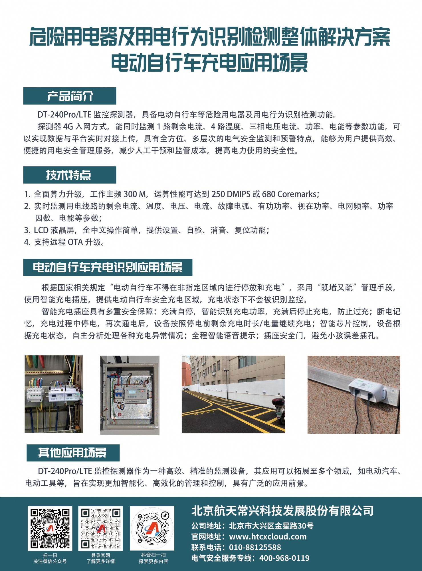 本產品版本在保障基礎檢測參數功能上,增加對電動自行車充電等危險用電行為識別及報警功能。