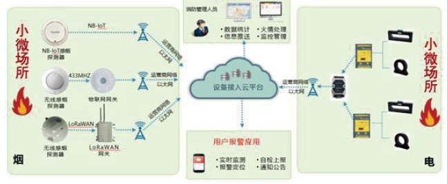 聯(lián)網(wǎng)場所發(fā)生火警或故障,通過溫度傳感器、剩余電流互感器等前端設(shè)備監(jiān)測到的信息,通過傳輸裝置上傳至云服務(wù)中心,消防部門可通過監(jiān)控中心以及手機終端獲取實時上傳的火警信息,及時確認(rèn)火警真?zhèn)?,并快速處理?/p>